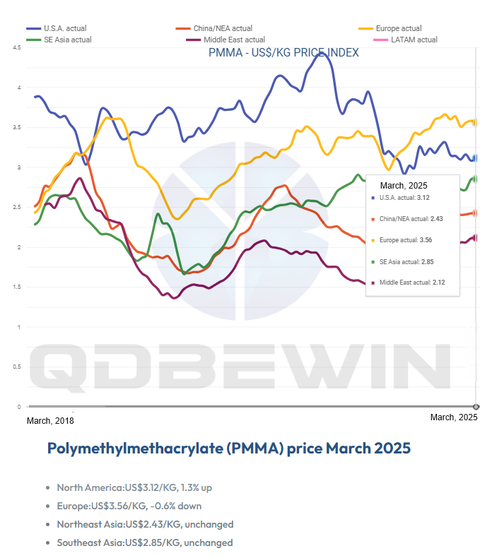 - El precio de la materia prima cae: el costo de PMMA (metacrilato de polimetilo), la materia prima primaria para las láminas acrílicas, ha disminuido a nivel mundial, contribuyendo a la disminución general del precio.